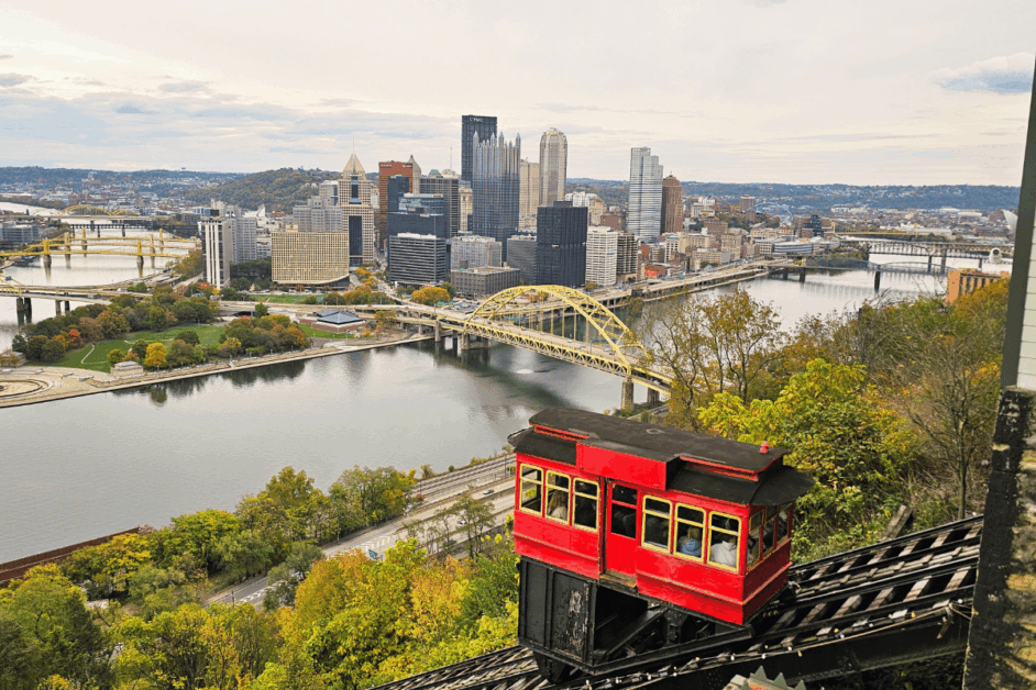 Next, make your way to the historic Duquesne Incline for a classic Pittsburgh experience. These historic cable cars climb the steep hillside of Mount Washington and offer postcard-worthy views of downtown (especially close to sunset). It’s a quick ride, but a quintessential must-do.